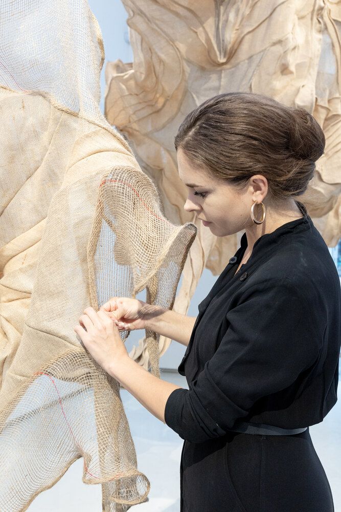 Dopo anni di esplorazione delle infinite possibilità dei materiali tessili come forme d'arte, Diana Orving porta il suo ingegno creativo un passo avanti. Nel tuo nuovo lavoro "Becoming" per la Galleria Tempesta, hai creato una grande installazione sospesa, una scultura tessile che ricorda una placenta, l'albero della vita da cui tutto nasce, incarnando il legame tra madre e figlio.
